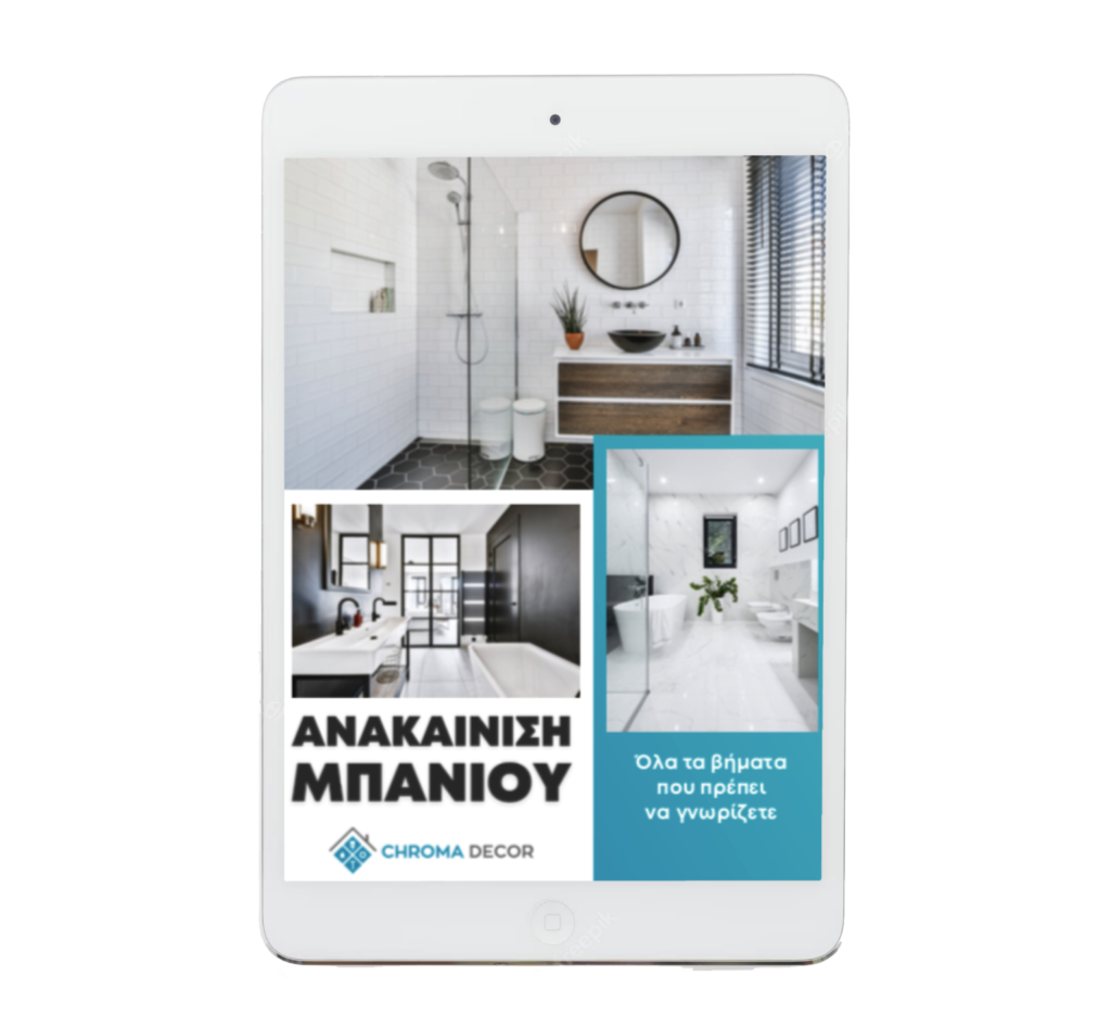Κάντε δικό σας το νέο δωρεάν Ebook για την ανακαίνιση μπάνιου από το Chroma Decor κάνοντας κλικ στην επιλογή “Download”.