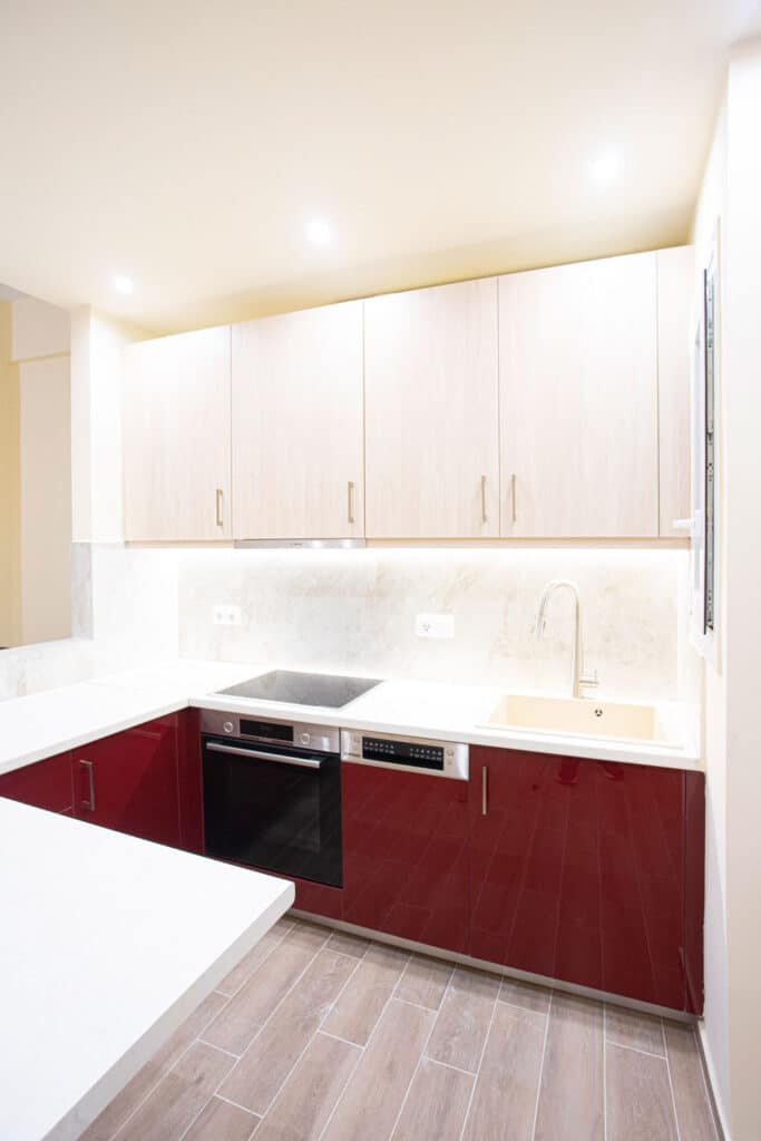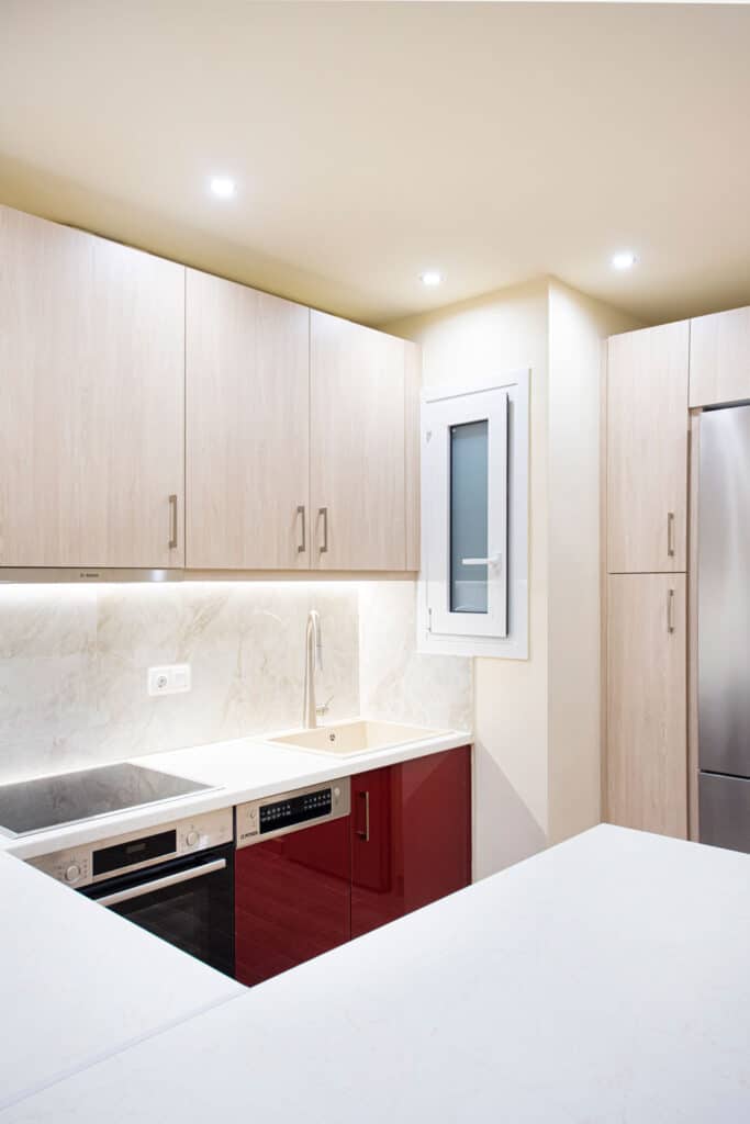 Η κουζίνα εξοπλίστηκε με εντοιχισμένες ηλεκτρικές συσκευές και αναβαθμισμένες ηλεκτρολογικές και υδραυλικές εγκαταστάσεις, εξασφαλίζοντας ασφάλεια και σύγχρονες προδιαγραφές.