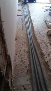 Περάσαμε λοιπόν νέες σωληνώσεις με χαλκό για αυτόνομη θέρμανση με αναμονές στο μπαλκόνι του σπιτιού γιατί ήταν απαραίτητη εργασία και έπρεπε να γίνει πριν τοποθετήσουμε τα πλακάκια σε όλο το σπίτι, μια εργασία δηλαδή που δεν μπορούσε να γίνει μετά που θα χρειαζόταν πάλι σκαψίματα και μερεμέτια και το κόστος θα ήταν πολύ υψηλότερο από ότι κόστισε σε αυτή τη φάση του έργου.