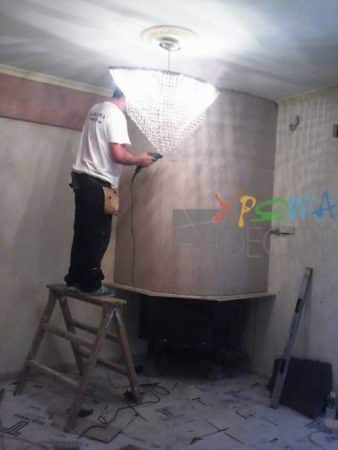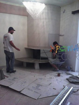 Οι φωτογραφίες μιλούν από μόνες τους. Η δουλειά που έγινε στη γυψοσανίδα έγινε με απόλυτη προσοχή, χρησιμοποιώντας πρώτης ποιότητας υλικά. Δώσαμε σημασία στο να διατηρήσουμε το χώρο καθαρό, και πριν ξεκινήσουμε τις εργασίες φροντίσαμε να προστατεύσουμε το δάπεδο. Αφού ολοκληρώσαμε τις απαραίτητες εργασίες για το στήσιμο της γυψοσανίδας, τη βάψαμε με τεχνοτροπία, και προσθέσαμε επένδυση μπροστά στην εστία με γρανίτη που επέλεξε ο πελάτης μας. Φυσικά, αφού τελειώσαμε το έργο, φροντίσαμε να παραδώσουμε το χώρο σε άριστη κατάσταση, χωρίς φθορές ή ζημιές από το συνεργείο.